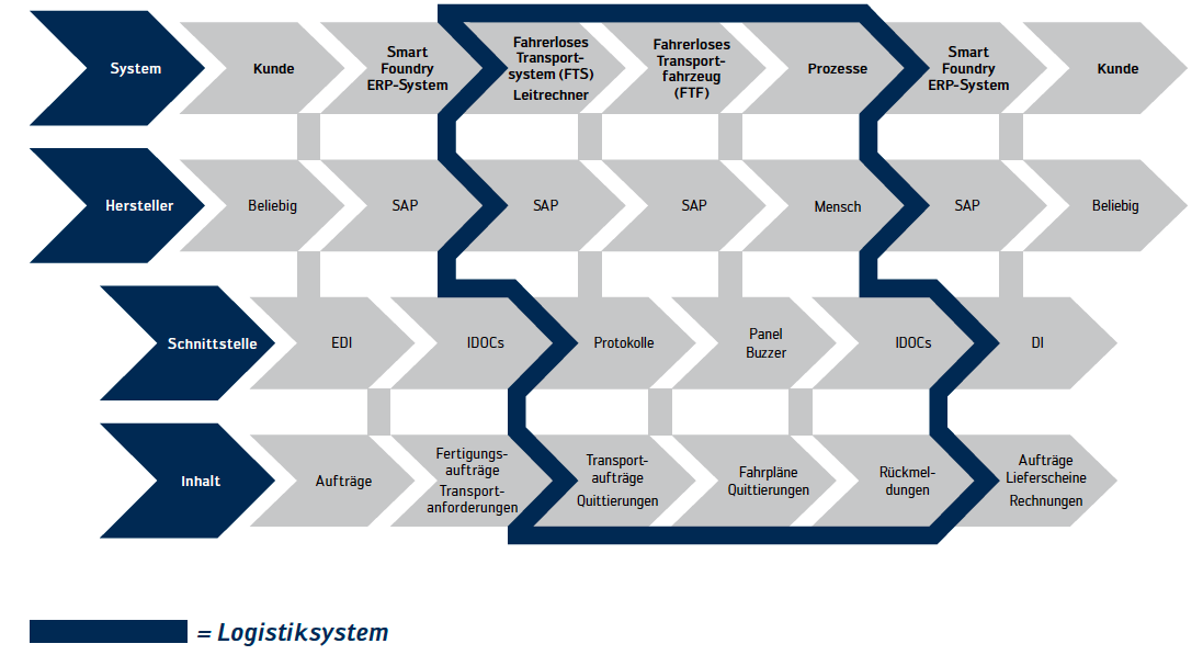 中央生产管理系统的基础是机器之间持续的信息交流,由此创造出了不同机器共同的接口。主机接收机器的数据,持续评估,最终给机器发出命令。目前来说最大的挑战是在尽快的时间内对大量数据的管理和评估。