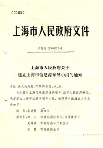“信息港”的建议得到上海市领导和主管部门的重视,1994年市委书记黄菊明确指示:把上海建成以信息资源网络化为主体的国际信息港,进一步增强上海中心城市综合服务功能和辐射功能。提出花15年左右时间,在2010年率先建成地区性“信息高速公路”。1996年5月,上海市政府制定了信息化行动计划,下发《关于把上海建成现代化国际信息港的实施意见》,成立市信息港领导小组及其办公室。同年7月,市政府召开全市信息港建设大会,上海国际信息港工程正式启动。年底,中共上海市第七次党代会提出了“推进国民经济信息化”的战略任务,市十一届人代会又具体提出了推进国民经济信息化和信息产业等各项任务。从此,“信息港”走红全国,铺满祖国大地,在世界也有一定影响力。