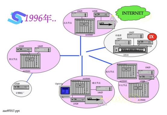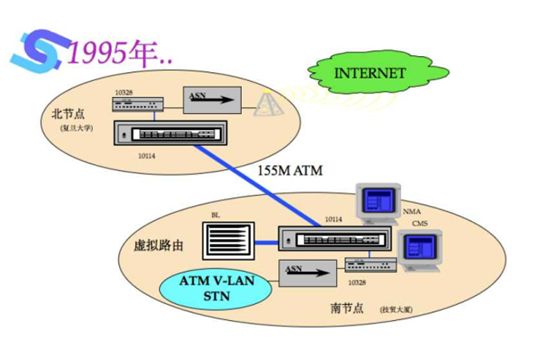 1995年7月科技先导网原型试验在上海展览中心举行的上海科技大会上首次向人们展示Web技术;11月在实验室完成两个节点的155兆ATM试验,并且注册登记了SH.CN域名和申请了IP资源,并在ATM上建立因特网标准系统。