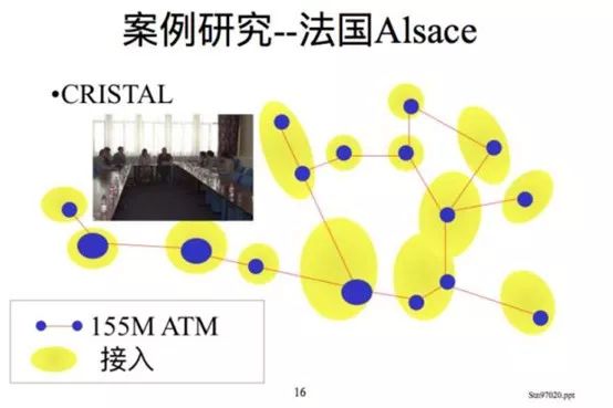 这是一种Scalability, Dedicated Bandwidth, Quality of Service Support的ATM网络,目前可以提供2G带宽,连接到Internet,也是麻省信息高速公路的试验网,作为测试基地。接下去,特地安排尹南鹰博士(Nanying Yin, PH.D. Consulting Engineering and Architectural Services)作技术层面的介绍,从分享走向交换,用光纤连接交换设备组成Backbone,以及应用实例。当我问到二个ATM设备之间光纤连接的最大距离是70公里时,我想我已经找到了上海信息港加快起步的可行路径。因为作为一个城域的宽带网络,构成网络交换设备之间的距离不会超过50公里!并且作为起步,建立这样的试验示范的互联网投资不大,但带宽可达全国城域网的领先水平,这是我们出访前想也不敢想的带宽。机会总是留给有准备的人!