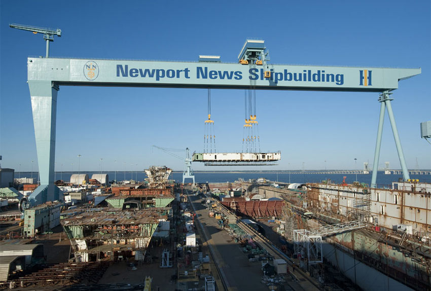 纽波特纽斯造船厂创立于1886年,不但是美国最大的造船厂,也是唯一能够设计、建造核动力航母以及对核动力航母进行核燃料更换和大修的造船厂,它负责美国海军100%的核动力航母建造,也是美国两大核潜艇制造厂之一以及50%的驱逐舰的建造(其余50%为通用动力公司建造)。