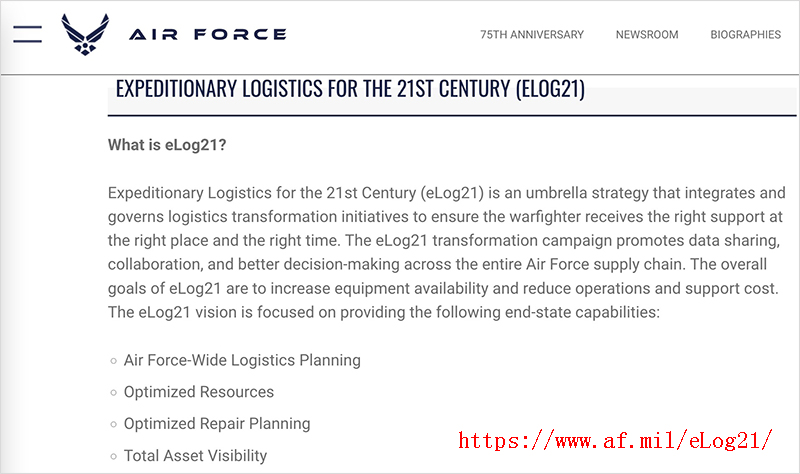 对于eLog21计划,美国空军官方网站还有该链接,建议大家可以去看一看。