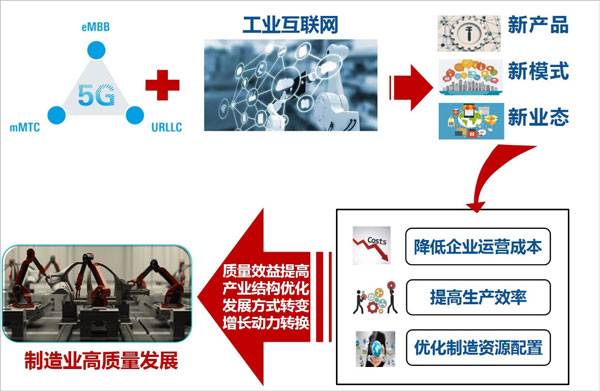 制造业是实体经济的主体,振兴实体经济重在做大做强制造业。2019年,中央经济工作会议把推动制造业高质量发展列为今年七项重大工作任务之首,明确提出要加大制造业的技术改造和设备更新,加快5G的商用步伐,加快人工智能、工业互联网、物联网等新型基础设施的建设。基于5G技术催生的工业互联网新产品、新模式和新业态,将显著降低企业运营成本,提高生产效率、优化制造资源配置,提升产品高端化、装备高端化和生产智能化水平,推动制造业实现质量效益提高、产业结构优化、发展方式转变、增长动力转换,为建设现代化经济体系提供有力保障。