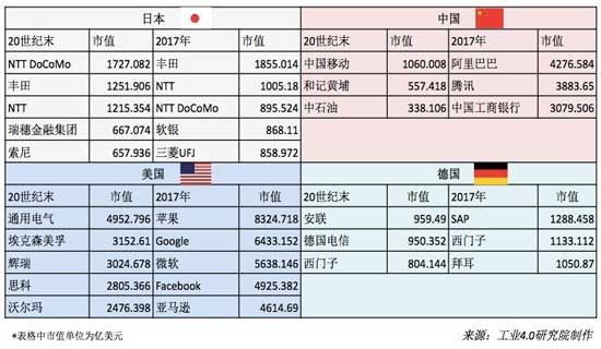 在第四次工业革命时代,资本与技术的结合将越来越紧密,龙头上市企业的变迁,体现了这个时代的变化趋势。我们可以从中国、美国、德国和日本四个国家龙头上市公司15年的变化,看到数字化、网络化和智能化发展趋势。与日本和德国相比,中美两个国家的市值最高的企业主要是互联网公司,这实际上是目前这个时代最大的趋势。美...
